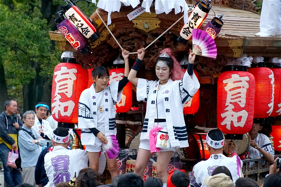 一番大きい北条中之町、手前の築地本三の地車が小さく見えます。