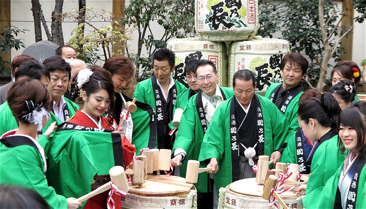 やっぱりOichanは、お酒の前がいいなぁ、とここに居座ることに・・・ さぁ、振る舞い酒の準備も完了 ここは一肌脱いで・・・じゃなく法被を羽おってでした。