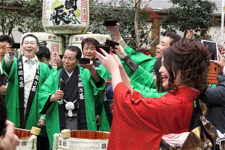 実はこの鏡割りの時、けっこう激しい怒号が・・・ マスコミ関係の方は中に入ってください、ということで、見ている人達の前に後からどわっと入ってきた。 当然前が全く見えなくなった。そりゃ怒るわな・・・Oichanだってむかっ・・・ でもよく考えれば、Oichanはプレスではないが、ちゃんとしたマスコミ関者だった。 しまった、中には入れたんだ・・・。でもマスゴミにはなりたくないなぁ。 Oichanは一番前だったし、文句はこの辺で・・・ で、歌恋さん、中西りえさん、西田あいさん、このスリーショットはなかなか見れないぞ。 目立ちたいのか、サイズがあわないのか、法被がどこかに・・・