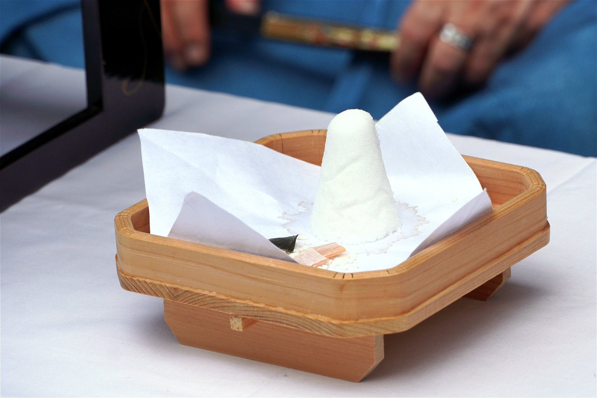 机の上にあったのは盛り塩かな…