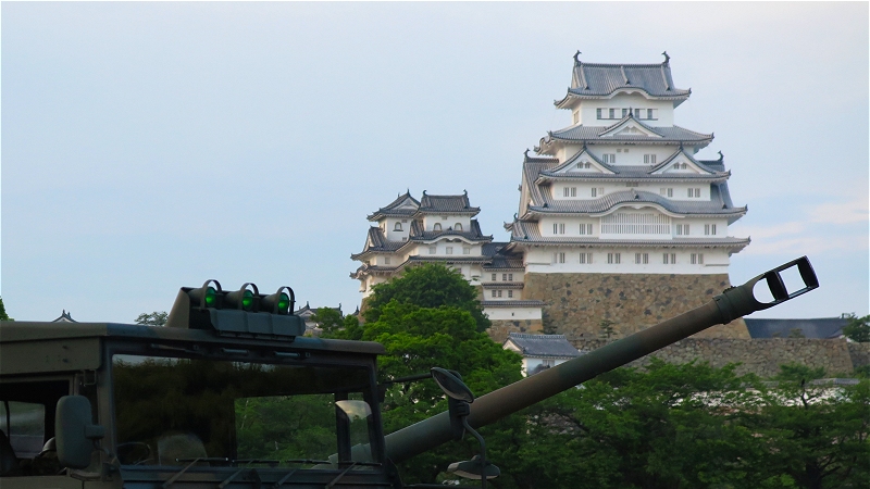 自衛隊の大砲と姫路城、お城には向いてません・・・