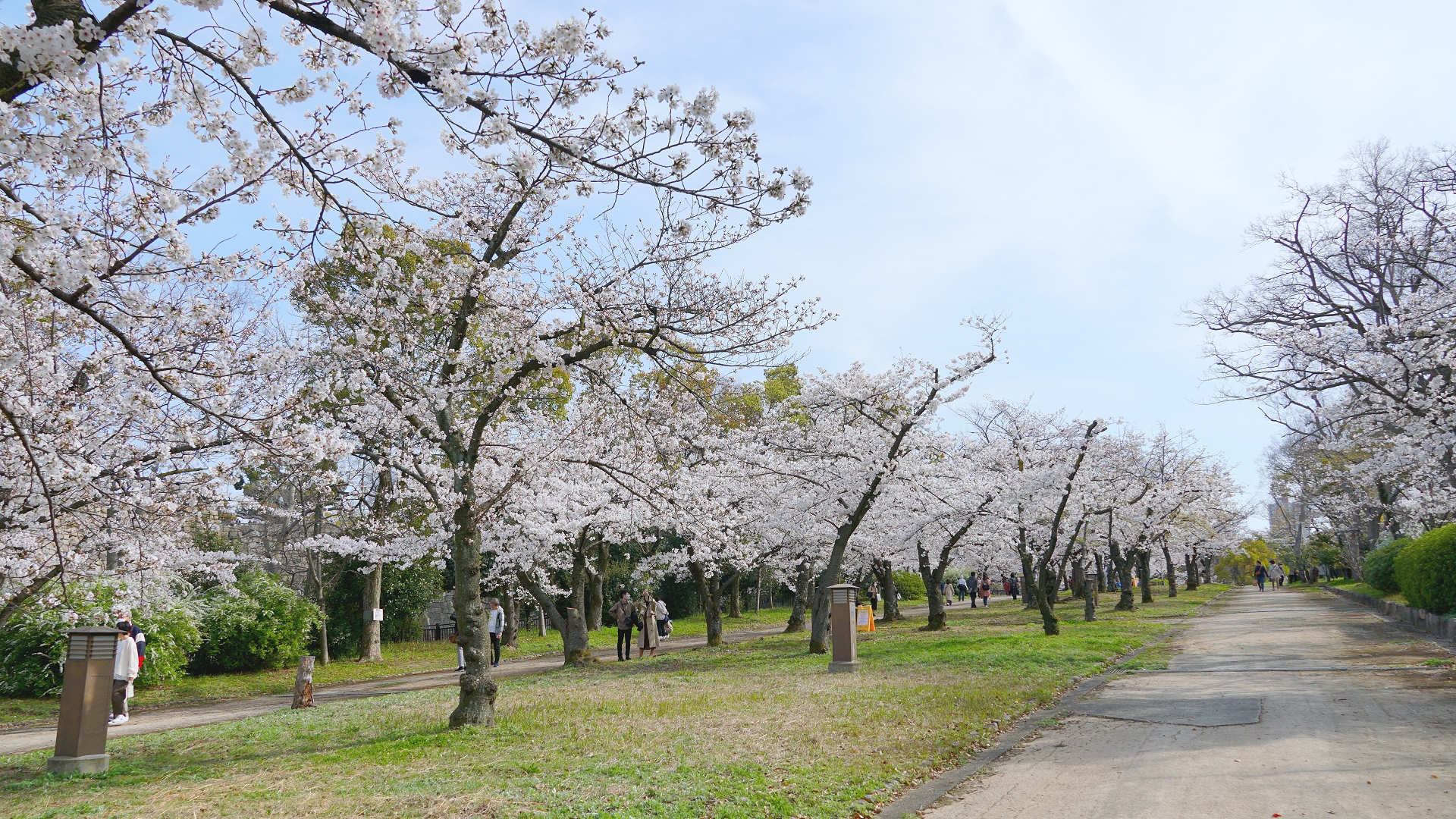 やはりいつもより相当人影は少ないです。 土曜日とはいえ、中でシートを敷いての飲酒飲食ができないとなると仕方のないことかも・・・ 右端の建物は迎賓館です。